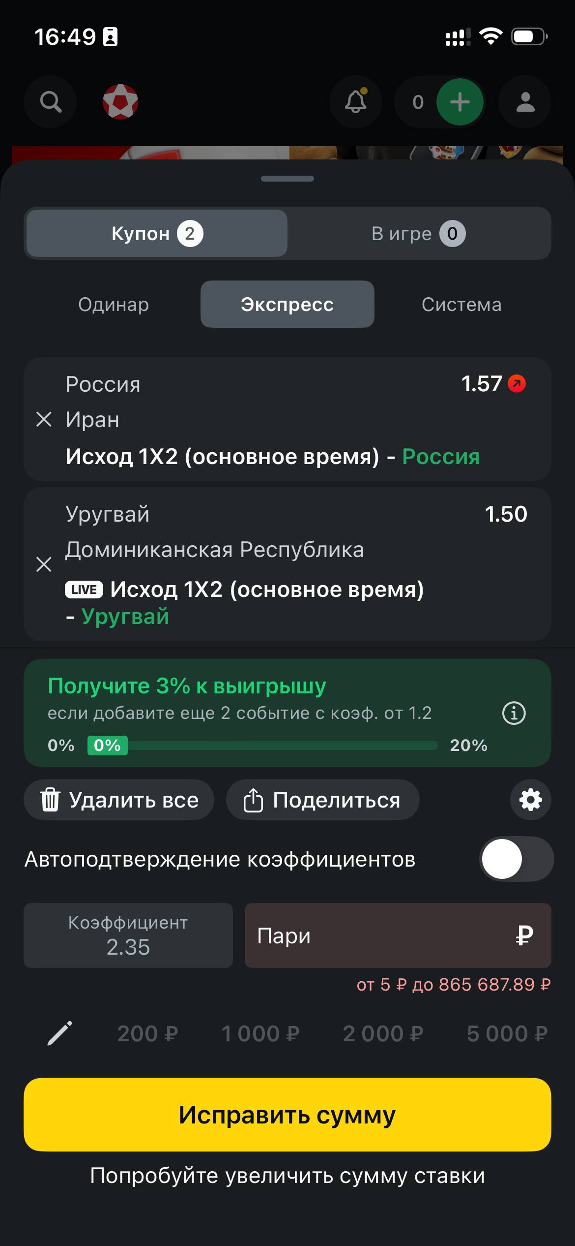 Платформа предлагает для пользователей множество спортивных дисциплин и их событий. Среди них, естественно, можно найти популярные виды событий по России.
