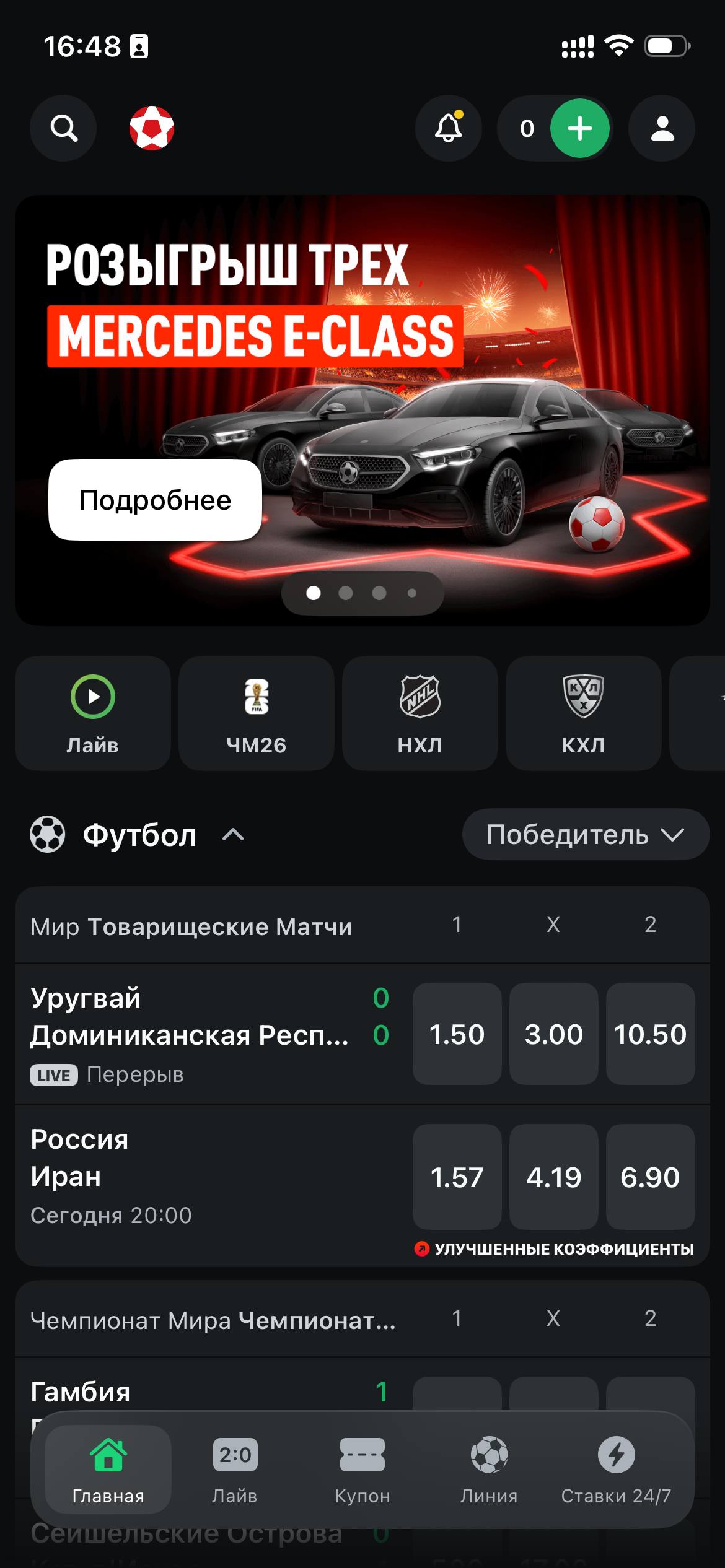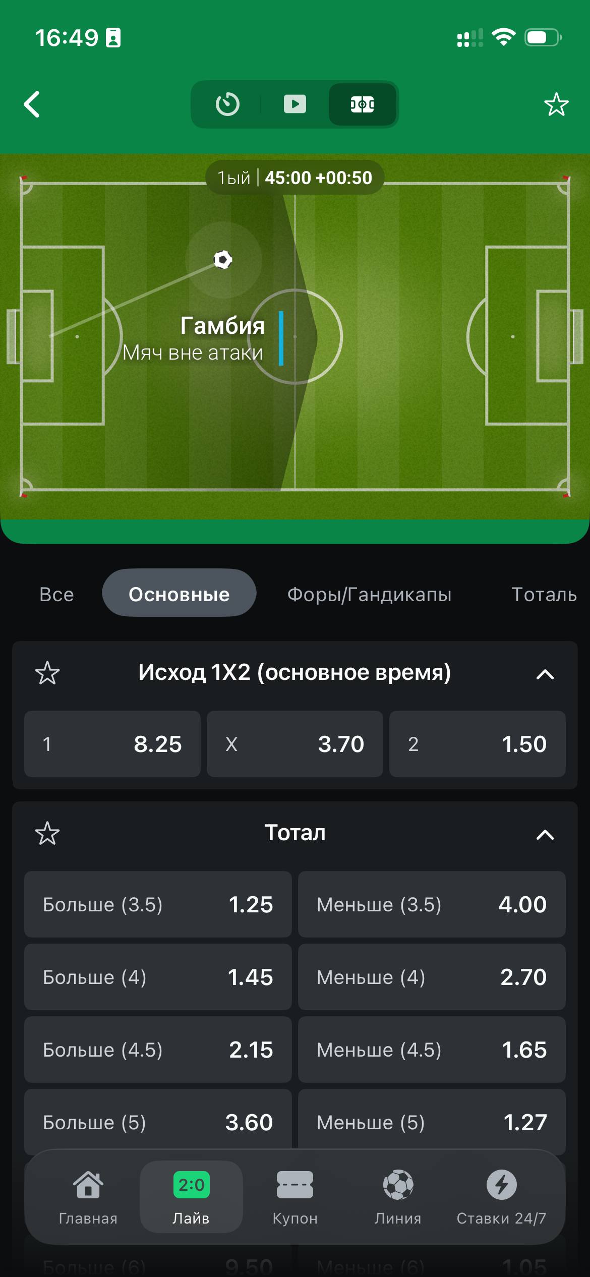 На любой из платформ БК выберите, какое событие Вас интересует: пре-матч или лайв.