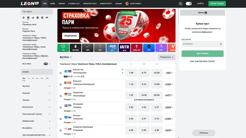 В пре-матче Leon маржа идет от 3% до 8%, в зависимости от вида спорта и популярности его турнира. Для популярных футбольных лиг маржа обычно составляет 2-3%. В хоккейных матчах этот показатель колеблется в пределах от 3,5% до 5%, та же ситуация у событий теннисных событий. На заключение же, пари на менее известные спортивные дисциплины, экзотические лиги и турниры, маржа составляет от 8%.
