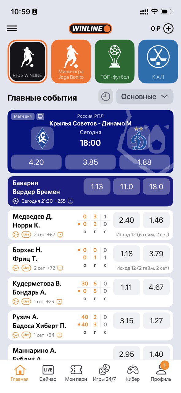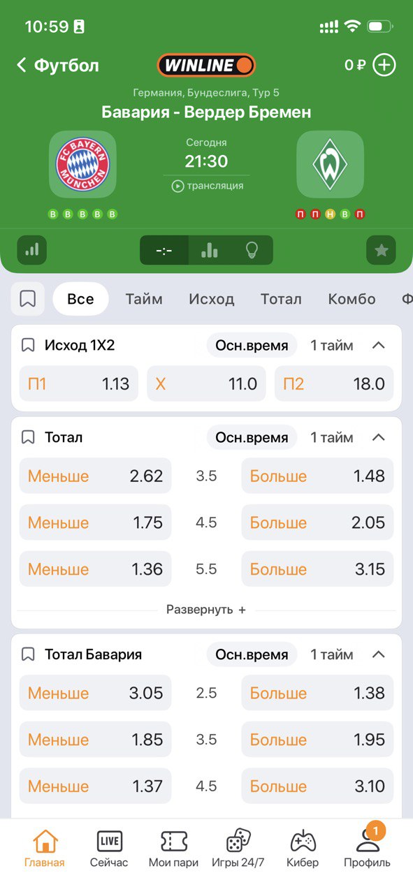 Для пользователей iPhone приложение Winline можно скачать бесплатно
