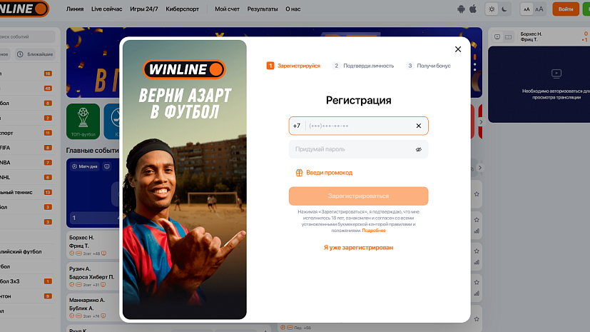 Доступ к функциям БК Winline разрешен только достигшим совершеннолетия гражданам РФ.