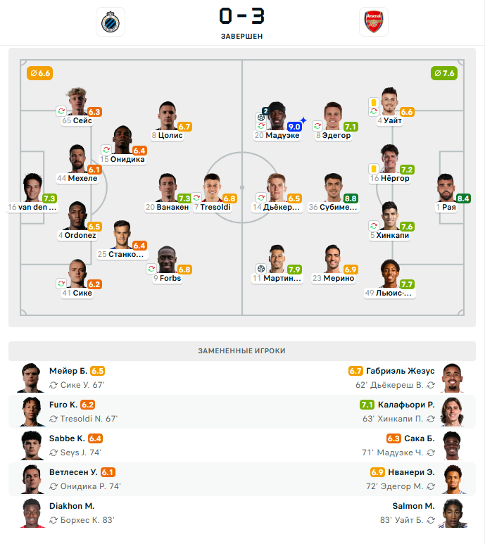 «Арсенал» продолжает лидировать в общей таблице Лиги чемпионов. Лондонцы набрали 18 очков в шести турах. Они являются единственной командой, которая ещё не теряла очки в нынешнем сезоне.