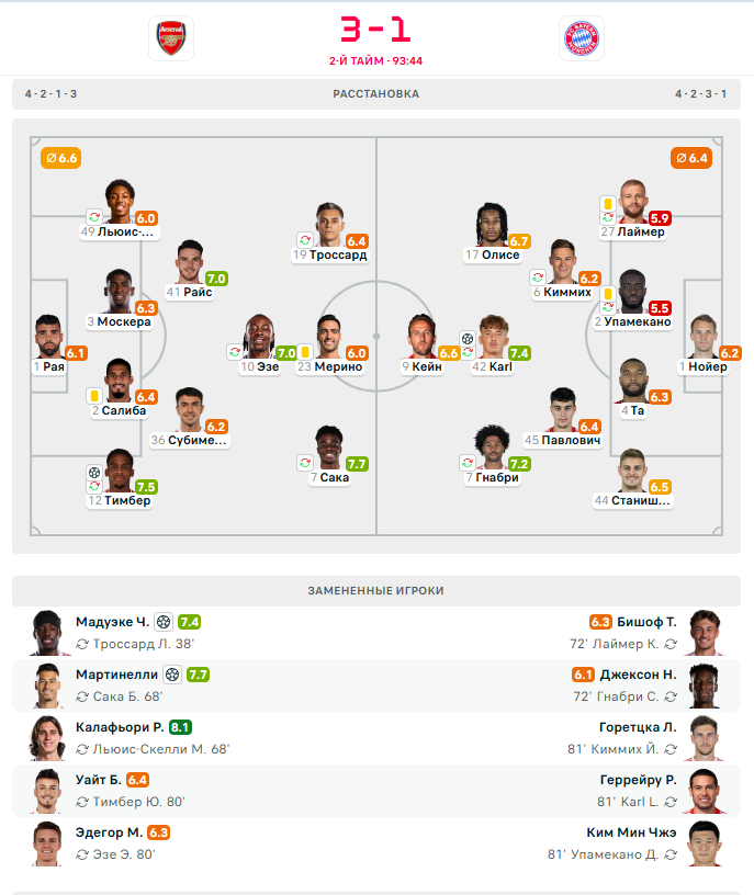 «Арсенал» одержал уже пятую победу подряд в этом розыгрыше Лиги чемпионов. Лондонцы лидируют в турнирной таблице. «Бавария» с 12 баллами занимает 4-е место. Мюнхенцы потерпели первое поражение в нынешнем сезоне в Лиге чемпионов.