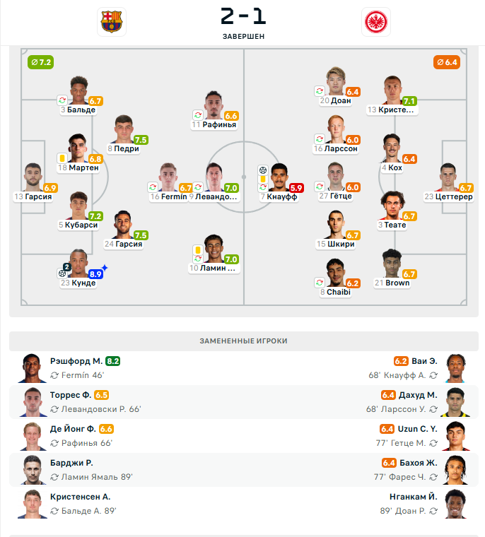 «Барселона» набрала 10 очков и поднялась на 14-е место в турнирной таблице. «Айнтрахт» располагается на 30-й строчке с 4 баллами.