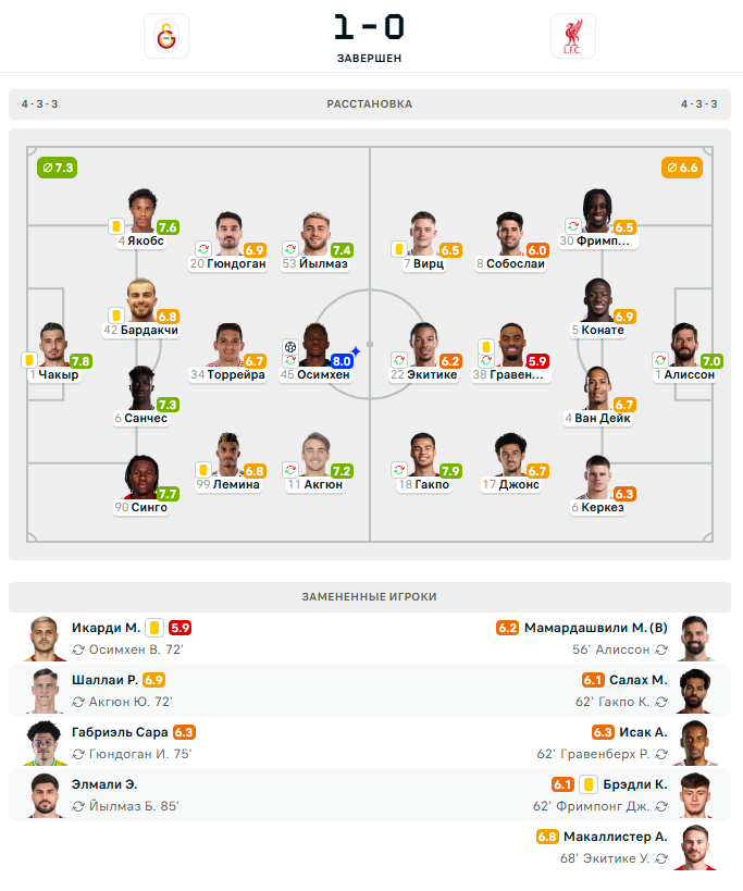 «Ливерпуль» с 3 очками занимает 16-е место. В свою очередь «Галатасарай» находится на 18-м месте, также набрав 3 балла.