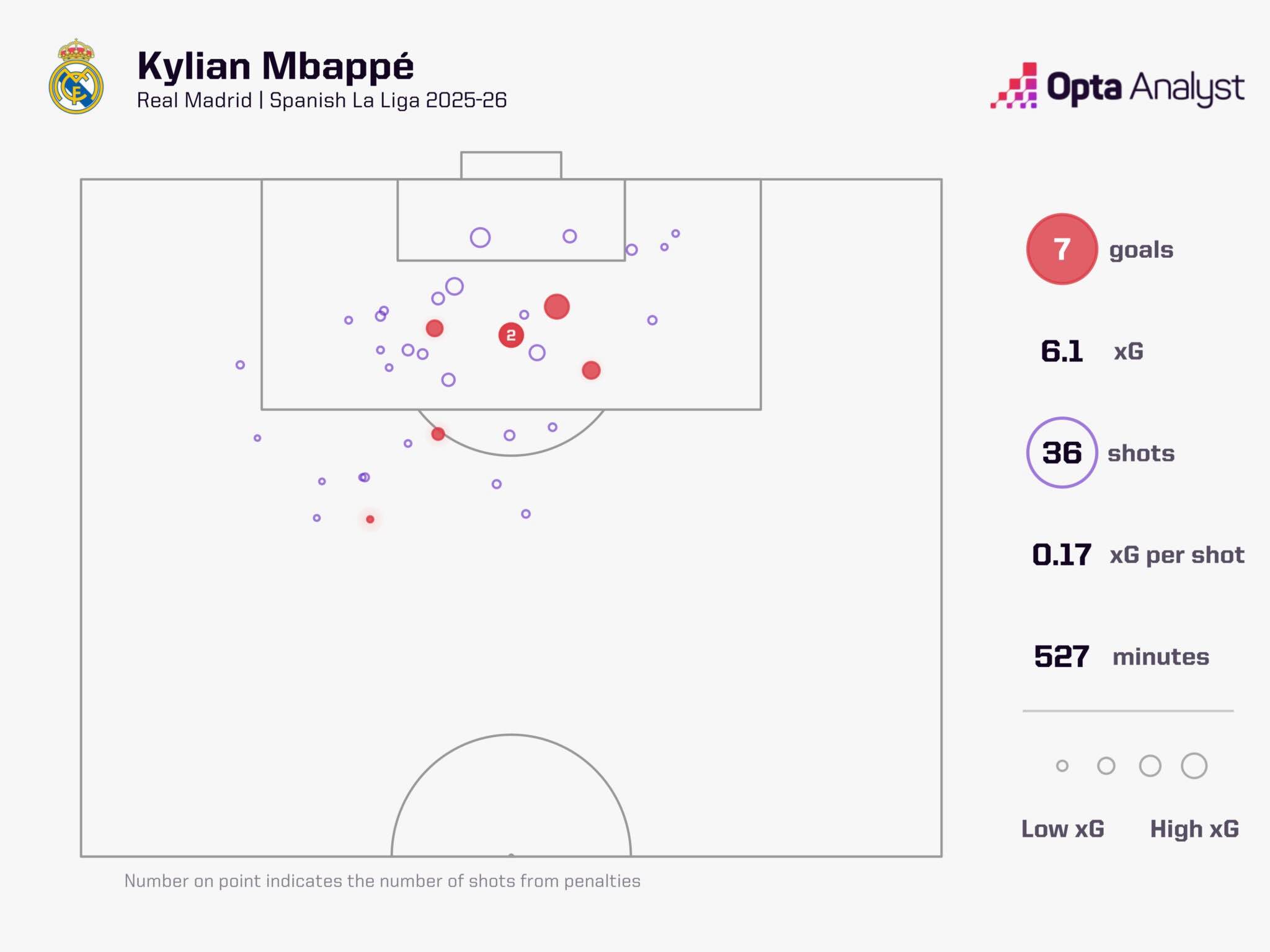 Но в этом сезоне француз ведет атаку «Реала» так, будто уже держит «Золотой мяч». Он забил семь голов в шести матчах, уступая лишь Харри Кейну (восемь голов) среди игроков топ-5 лиг Европы. По ожидаемым голам (xG) Мбаппе идет вторым (6,07), немного позади Эрлинга Холанда (6,26), а его 6,2 удара за 90 минут — лучший показатель в Европе на данный момент.