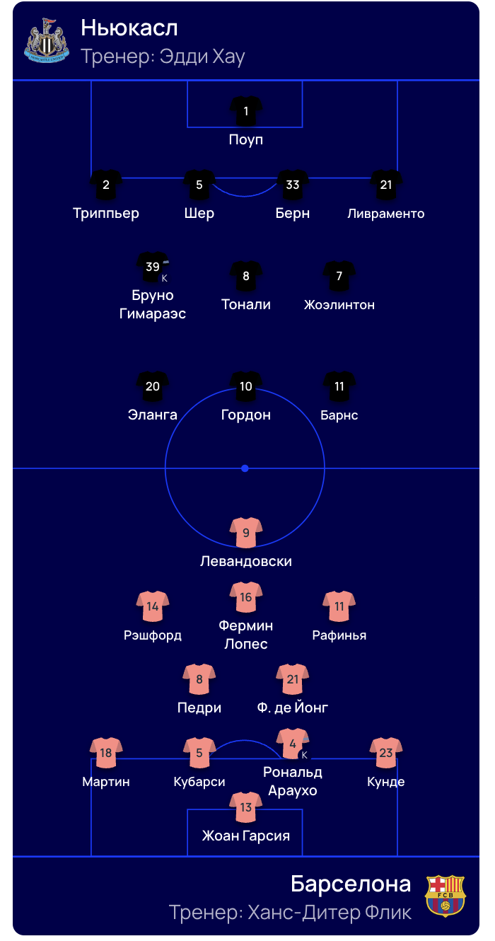 «Ньюкасл Юнайтед» постарается воспользоваться фактором домашнего поля, и набрать очки в игре с испанским грандом. Интересно, что «Барселоне» не сможет помочь ее лидер Ламин Ямаль из-за травмы. Впрочем, Маркус Рэшфорд вряд ли успел забыть, как играть против английских команд.