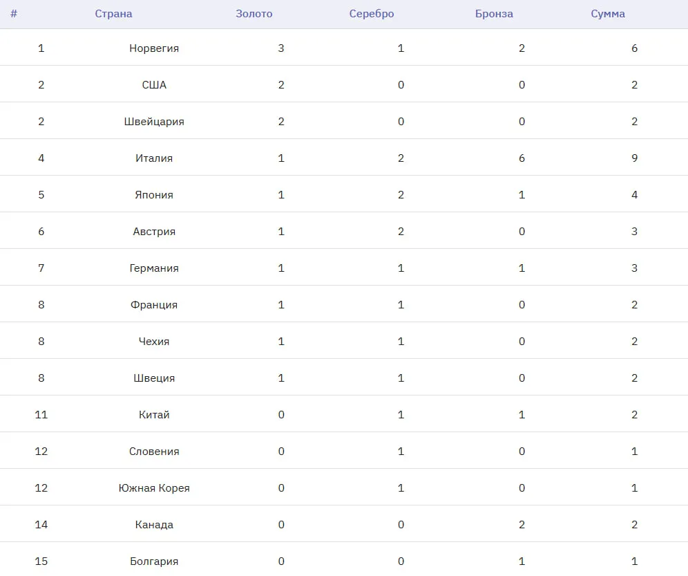 Олимпийские игры продлятся до 22 февраля, и впереди ещё 115 комплектов наград. Важно отметить, что в этом виде программы российские спортсмены участия не принимали.