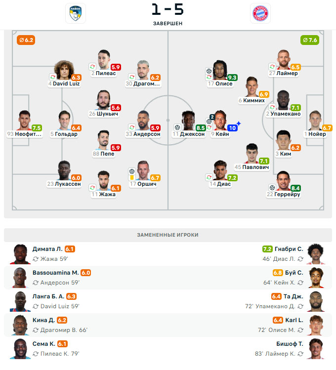 «Пафос» находится на 27-м месте в турнирной таблице. Команда с Кипра набрала 1 очко. В свою очередь «Бавария» с 6 баллами находится на 1-м месте в турнирной таблице.