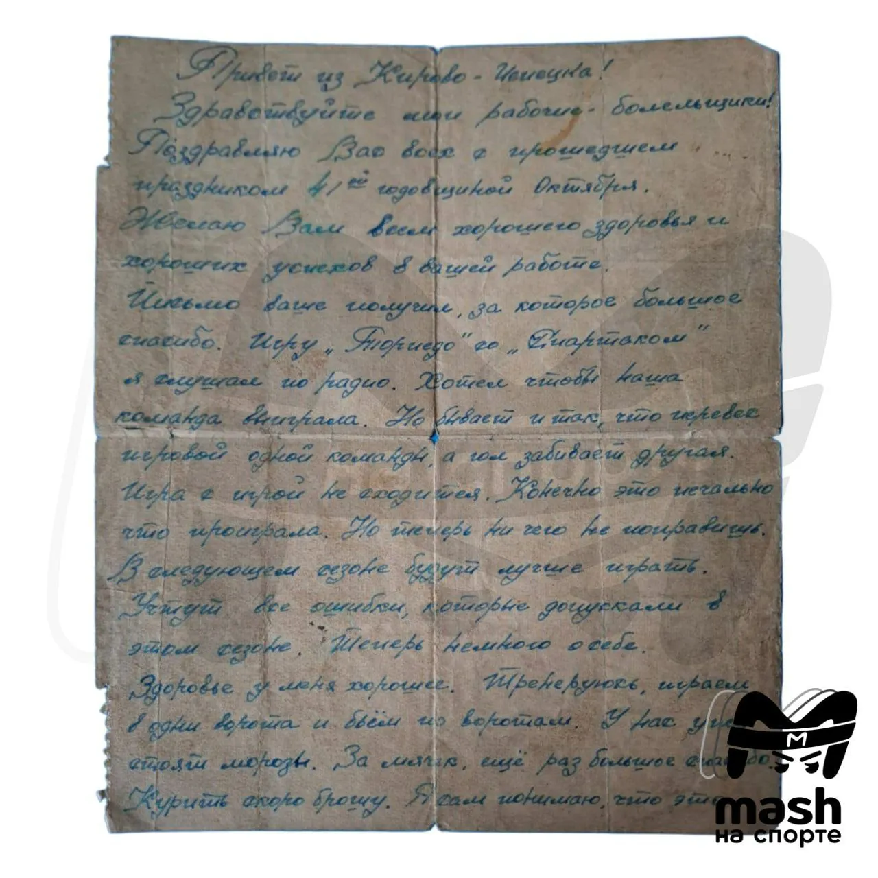Примечательно, что в тексте письма, который приводит издание, присутствуют характерные для того времени и уровня образования орфографические ошибки: «ни чего», «досвидание», «тренеруюсь», «зделал».