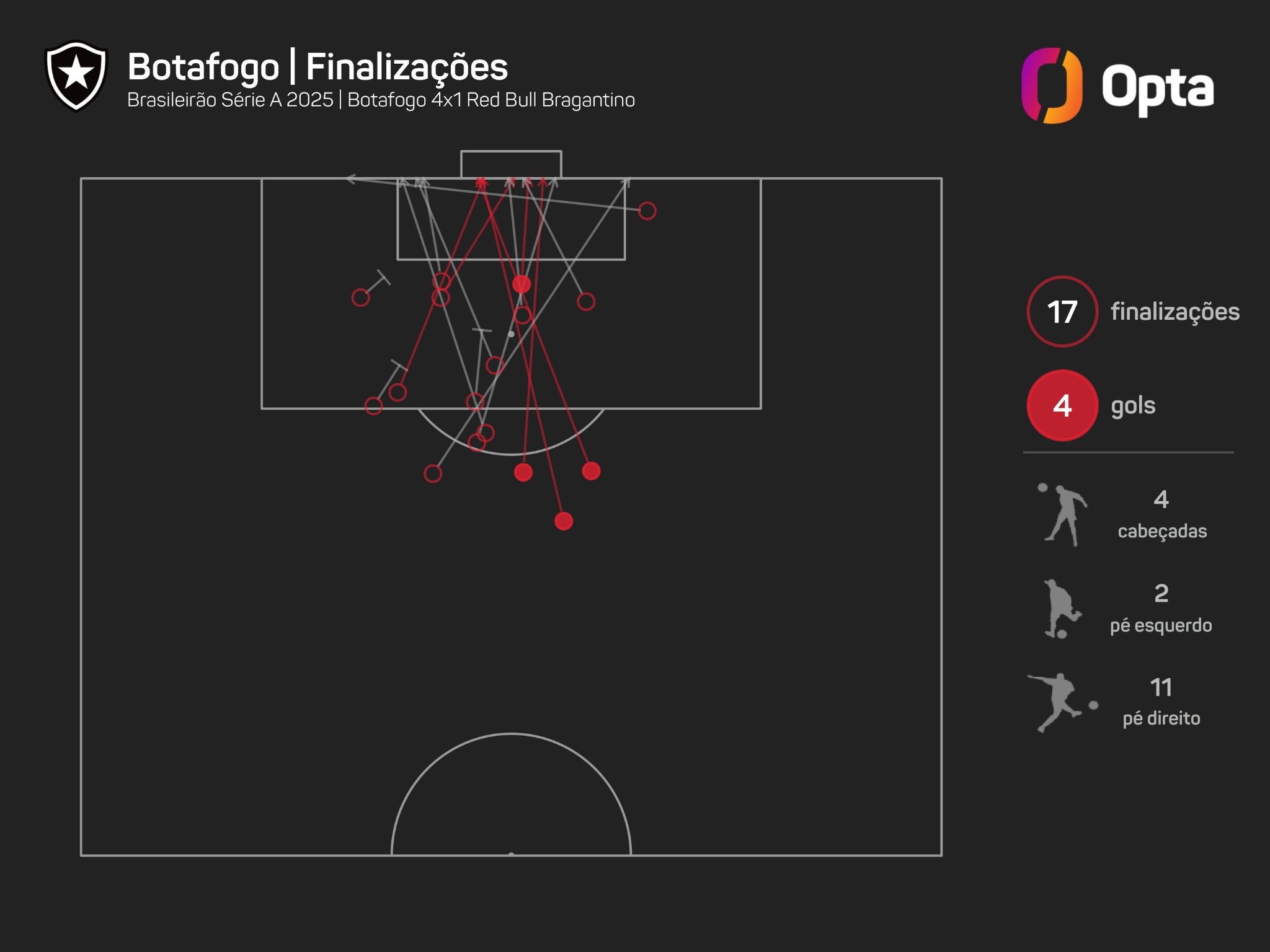 В последнем матче с «Ред Булл Брагантино» (30.08), завершившемся уверенной победой «Ботафого», хозяева повторили уникальное достижение «Фламенго»: забили за матч 3 гола ударами из-за пределов штрафной площади.