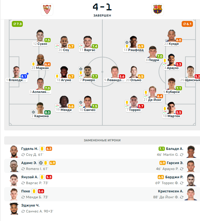 «Барселона» с 19 очками занимает 2-е место в турнирной таблице. В свою очередь «Севилья» набрала 13 очков и поднялась на 5-е место.