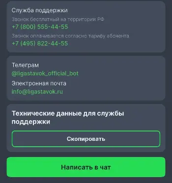 - Почта info@ligastavok.ru. Подходит, если нужно прикрепить скрины, объяснить сложную ситуацию или сохранить переписку. Не моментально, но отвечают в течение пары часов.