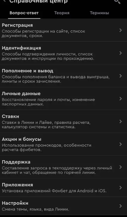 У «Фонбета» на сайте есть целый раздел с ответами на частые вопросы — от «почему не пришёл бонус» до «как верифицировать карту». Называется просто — База знаний.