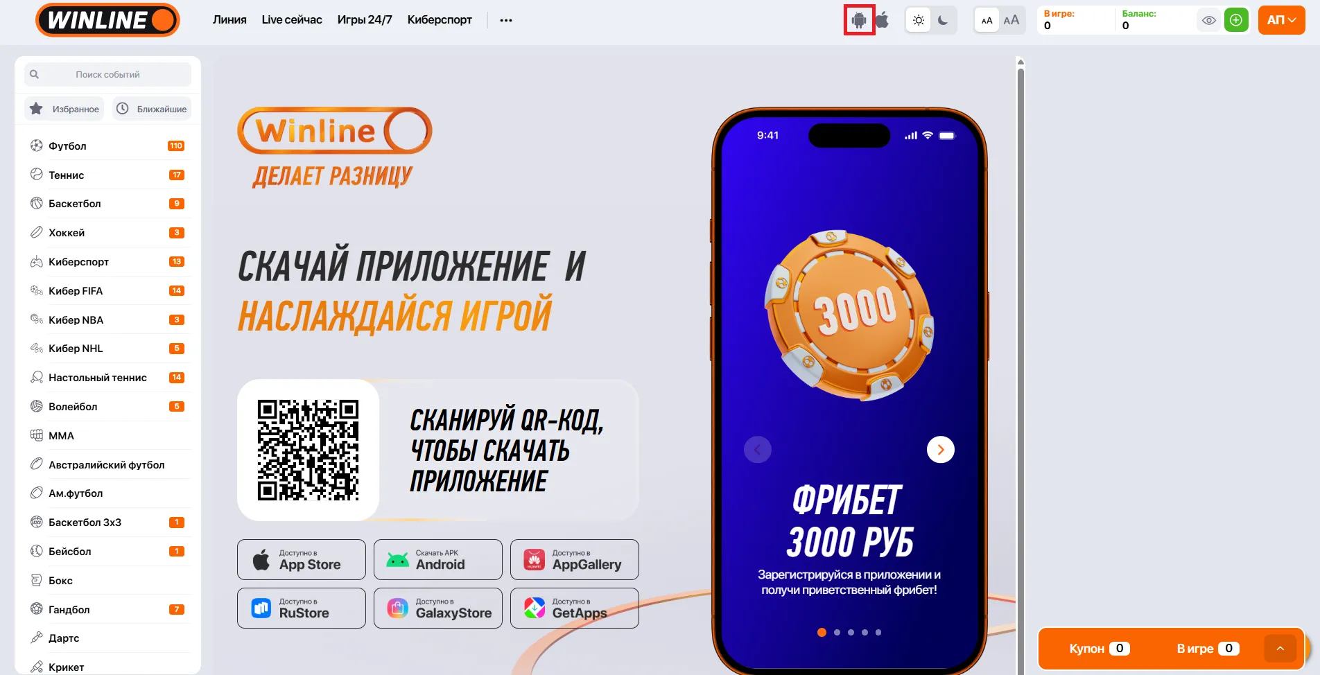 И да, если ты вдруг на iPhone — не бойся, в App Store тоже есть версия Winline, с тем же функционалом и бонусами.