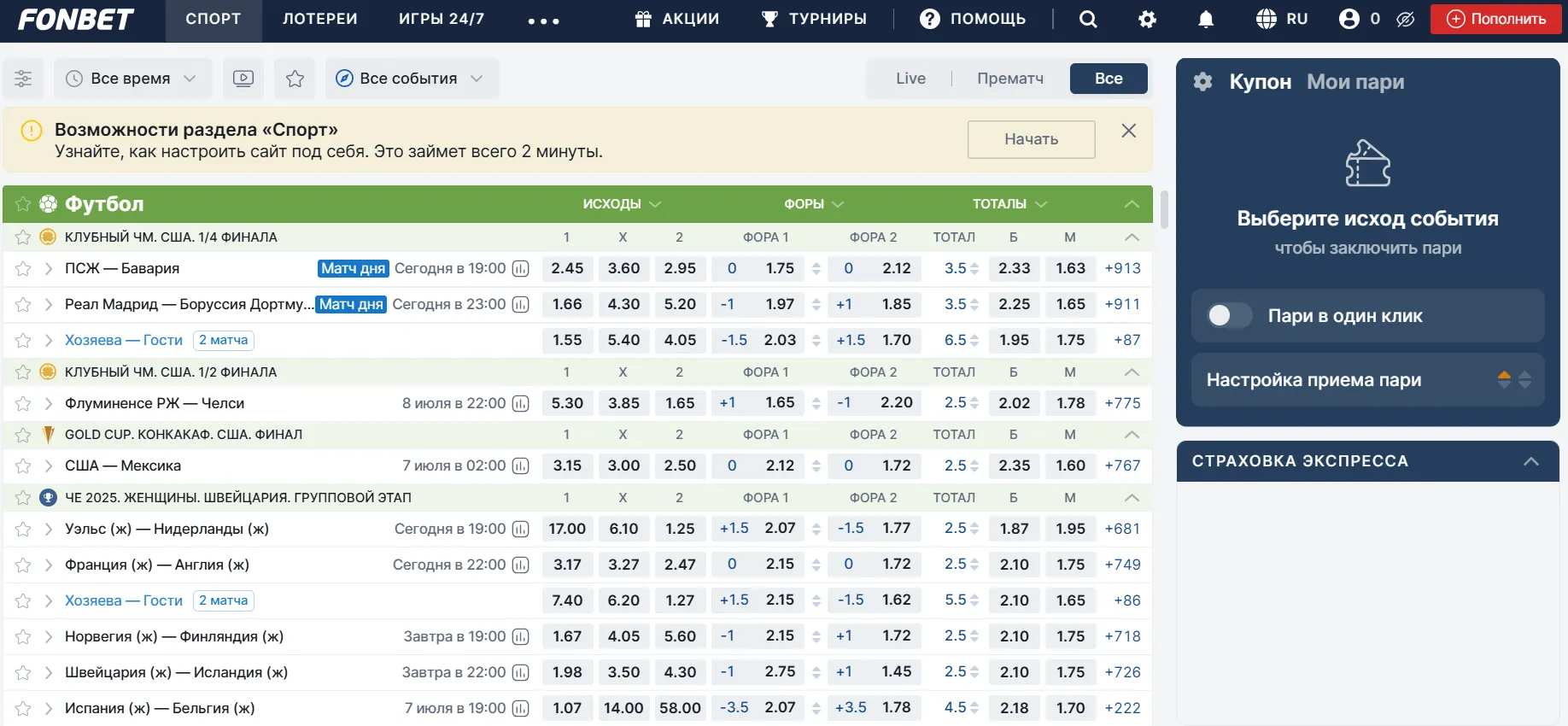 На что стоит обратить внимание? Во-первых, на маржу. В среднем по рынку она у Фонбета в районе 4–6% в футболе и около 7% в баскетболе и хоккее. Это не пиннакловские 2%, но и не грабёж. Во-вторых, линии обновляются быстро — что хорошо, но иногда из-за этого быстро проседают высокие кэфы. Увидел — бери, иначе уйдёт.