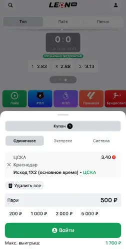 Как делать ставки в мобильном приложении «Леон» на iOS