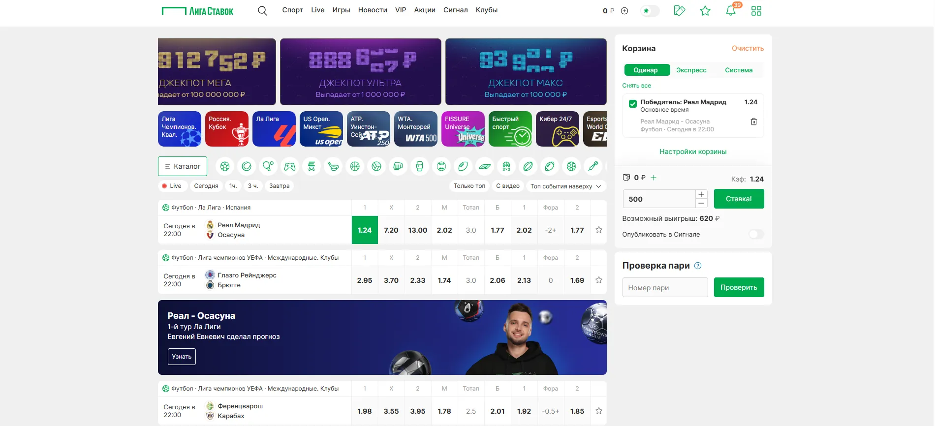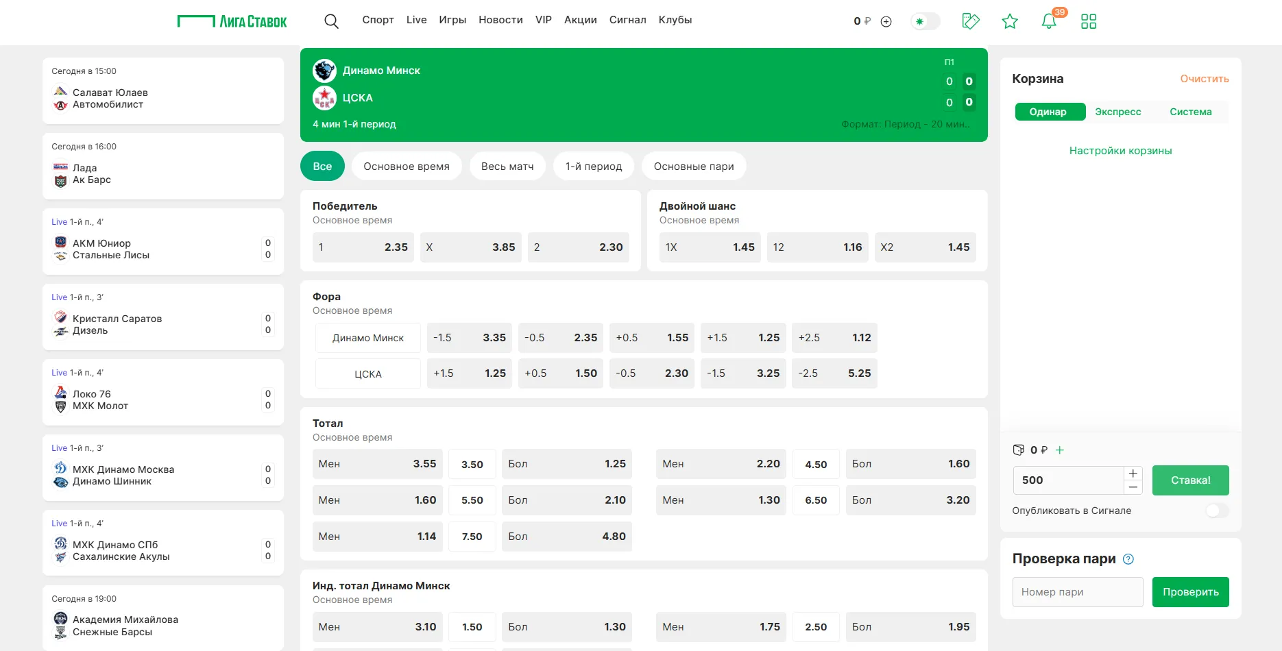 - Выбирай событие — предматч или лайв, как тебе удобно.